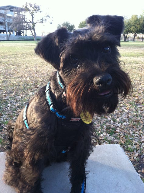 I said goodbye yesterday to one of my dearest best friends ever, Finnegan. Finn came into my life in March of 2013 during a difficult time for me, I’m convinced, to just help me get through it all. I had moved to Dallas Texas in August of 2012 having lost most everything important in my life. My First wife, Debbie, to cancer in 2004. My Father died 8 months later in 2025. My second marriage was over. The Rocky Mountain News had closed in February of 2009 and by the time 2012 rolled around I had little left in savings and my house in Parker had to be sold. Off to Dallas I went in hopes of finding better opportunities and a new life. I stayed so busy there with past commitments to freelance jobs that I had little time and energy left to pursue much of a life outside the four walls of my apartment and the field, stream and grove of trees located directly behind my apartment . I was alone and lonely. Adopting a dog seemed like a good idea. A friend there in Dallas helped me adopt Finn from the North Texas Schnauzer Rescue. Michell Anderson even paid the adoption fee. I was that broke.