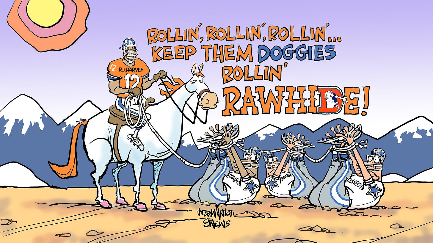Broncos Tonight cartoon on 9News! Check out Horace below for A post game wrap up and some Cowboys jokes!
